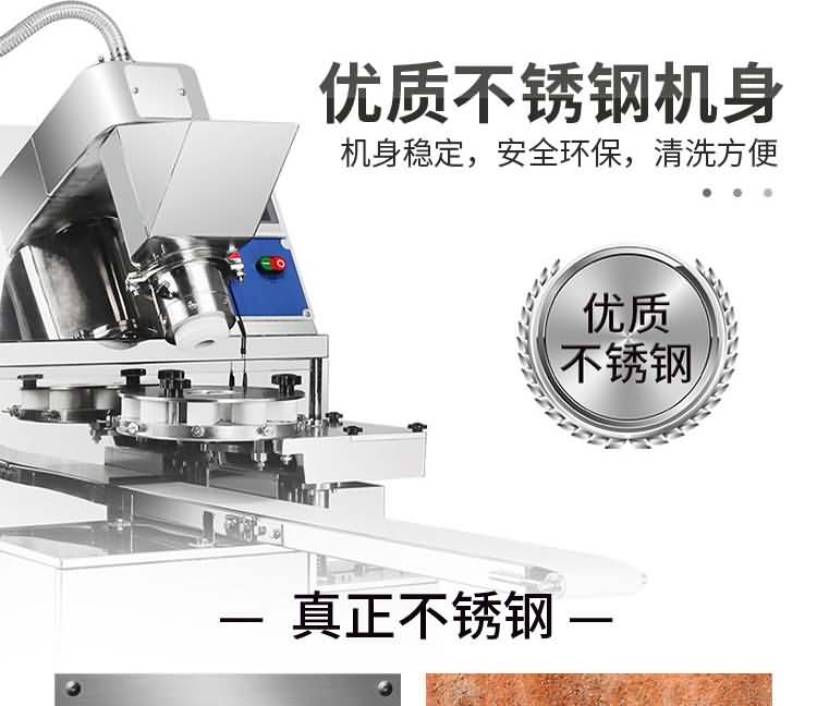 ◆出餡系統(tǒng):立式料斗,立式餡攪龍結(jié)合偏心餡泵同步撥擠餡料方式。結(jié)構簡單密閉性好。使注餡均勻流暢,實用于決大多數(shù)菜包,肉包,灌湯包,奶黃包,豆沙蓮蓉包等餡料。并且餡管采用半臥式傾斜裝配,防止了市面上立式出料包子機餡料容易成團下掉造成包子餡料不均勻或出現(xiàn)空包子的現(xiàn)象。