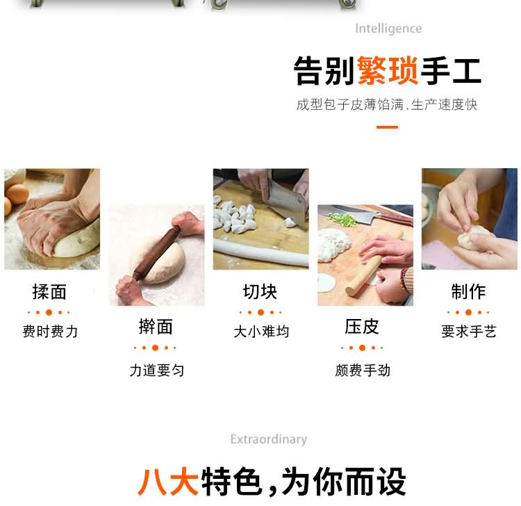 ◆ 民間面食工藝結合現代科技,所做包子、饅頭的密度、氣孔均勻細膩,富有彈性、韌性、口感性和筋度。