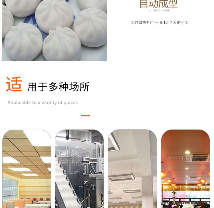 ZH-86型自動組合包子饅頭機,可生產各種不同餡料的包子、南瓜餅、小籠包、圓饅頭等各種包餡類產品。適用于個體戶、食品廠、學校等各種工作場所??蓾M足不同客戶群體。免費提供工藝技術。免費上門培訓指導安裝。