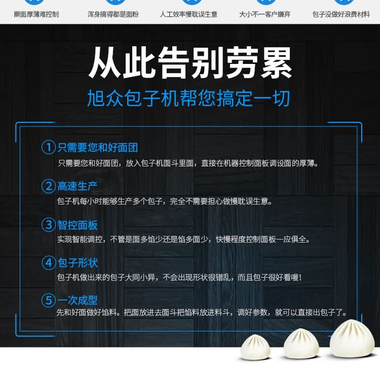 生產(chǎn)品種多樣化,可生產(chǎn)各種不同餡料的包子,酥餅等產(chǎn)品;對(duì)面粉的質(zhì)量要求不高,可做發(fā)面,老面等工藝,且適合各種工作場所。本機(jī)提供免費(fèi)上門培訓(xùn)指導(dǎo)、安裝、調(diào)試、面點(diǎn)工藝傳授。