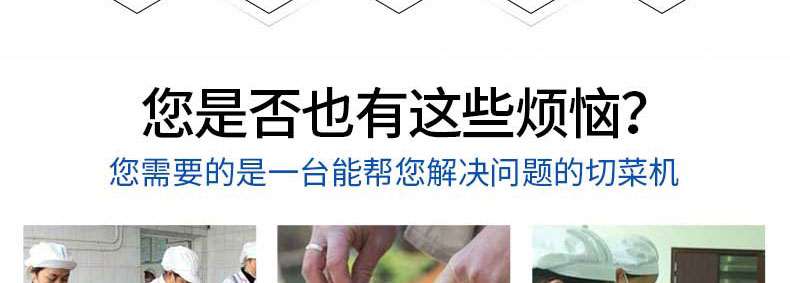 1、機器為一機多用型,可切葉菜、根莖類蔬菜,并可蔬菜切段、切絲、切碎,根莖類切圓片、半月片、切碎;