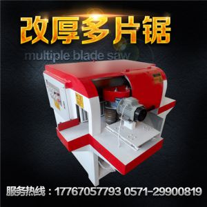 改厚多片鋸可對三角下料和邊皮料鋸分成薄片,可一分和多分片,分片準確,鋸路小。是加工三層板的理想設備!適用于厚料、邊皮料一分二或多片成薄片,做三層板。