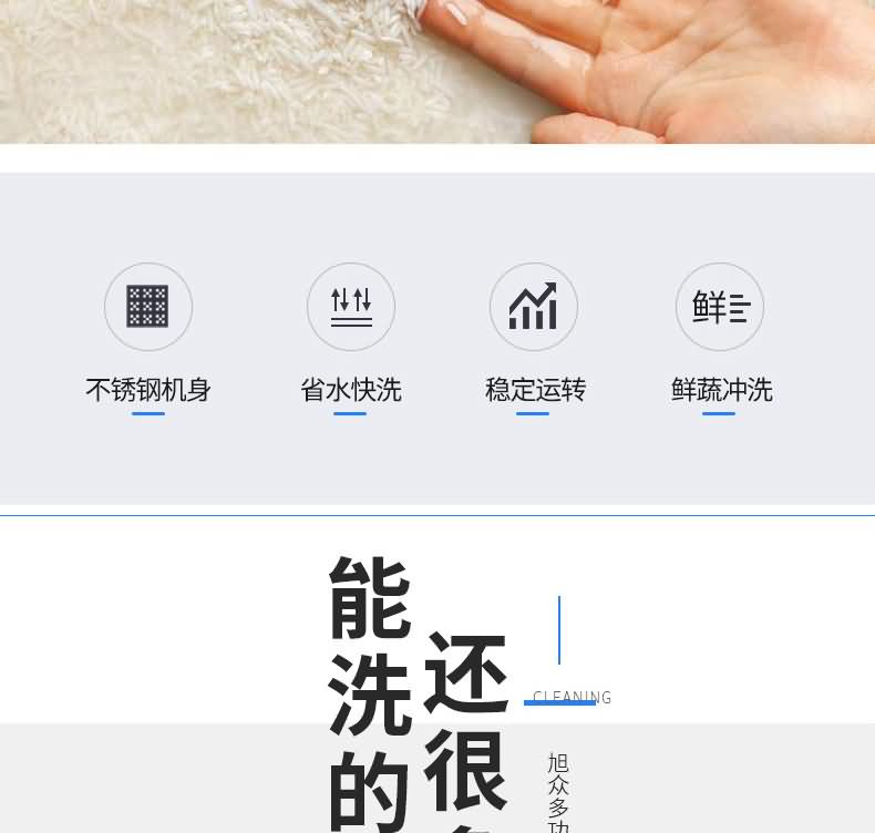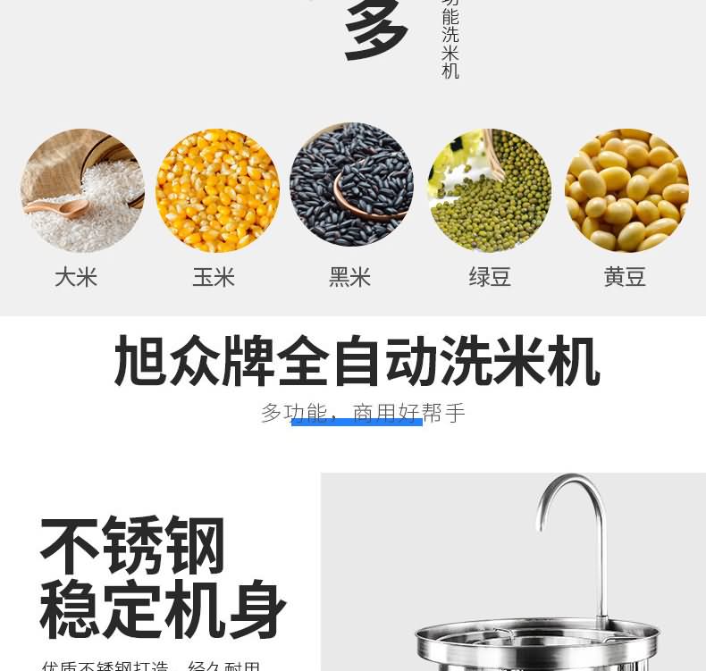 適用于大米、小麥、玉米、豆類等顆粒糧食淘洗。