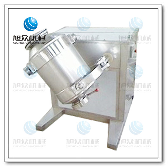 工作原理該機在工作時,由于混合桶具有多方向運轉動作,使各種物料在混合過程中,加速了流動和擴散作用,同時避免了一般混合機因離心力作用所產生的物料比重偏析和積聚現象,因此可取得極好的混合效果。特 點 1、由于混合桶具有多方向的運動,使桶體內的物料混合點多,混合效果顯著,其混合均勻度要高于一般混合機,藥物含量的均勻度誤差要低于一般混合機。同時SBH系列三維運動混合機最大裝料容積比一般混合機要高出一倍以上(一般混合機最大裝量容積為桶體全容積的40%)。 2.SBH系列三維運動混合機的混合桶設計獨特,桶體內壁經過精細拋光,無死角,不污染物料,出料時物料在自重作用下順利出料,不留剩余料,具有無污染、易出料、不積料、易清洗等優點。 3、物料在密閉狀態下進行混合,對工作環境不會產生污染。