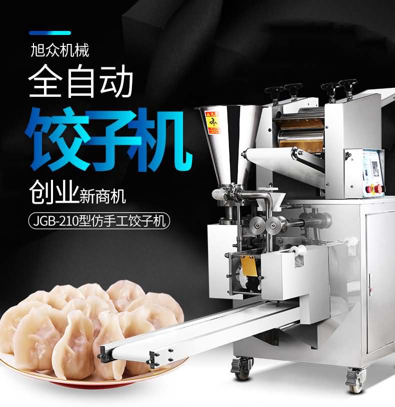 旭眾牌JGB-210型仿手工餃子機是我公司研發(fā)生產(chǎn)的先進(jìn)自動餃子生產(chǎn)設(shè)備。本機采用自動壓面皮包餃子的新工藝技術(shù),克服了舊式餃子機絞龍強力擠壓而帶來的對面筋的損傷,面團(tuán)不會發(fā)熱,不會糊化,餃子口感佳。
