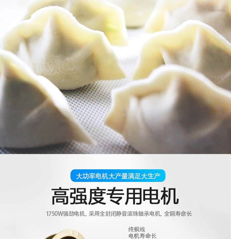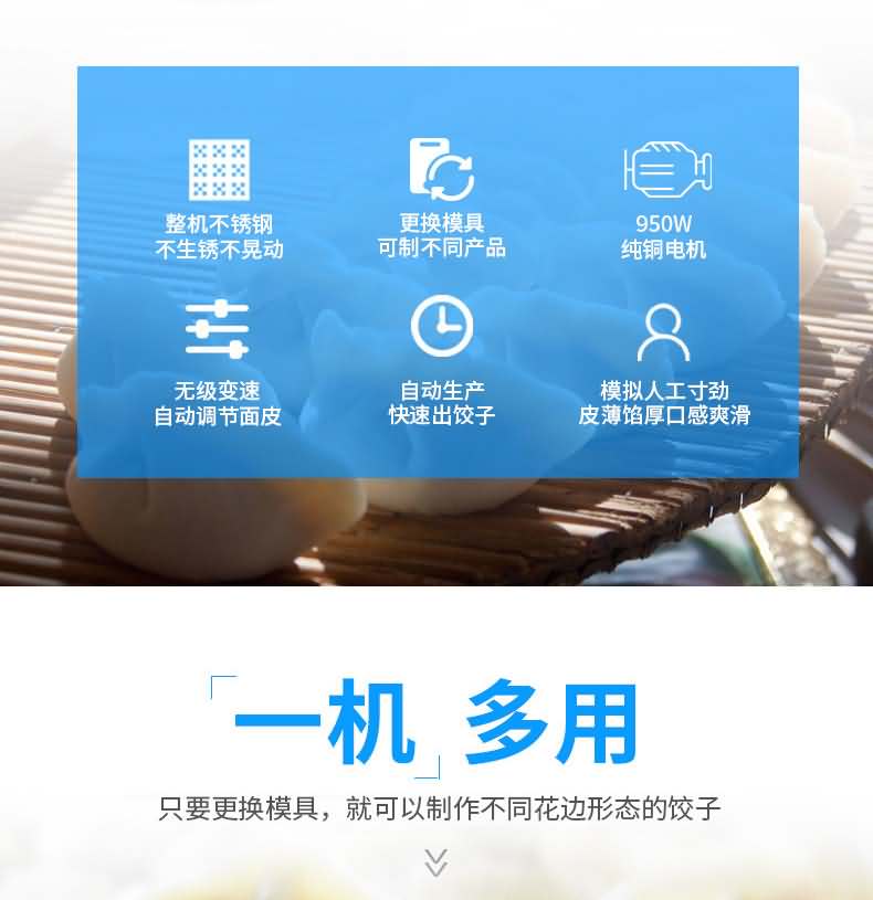 ?餡量、面皮厚薄隨時可調(diào),生產(chǎn)的餃子,皮薄餡滿,生產(chǎn)速度快,省工省時;