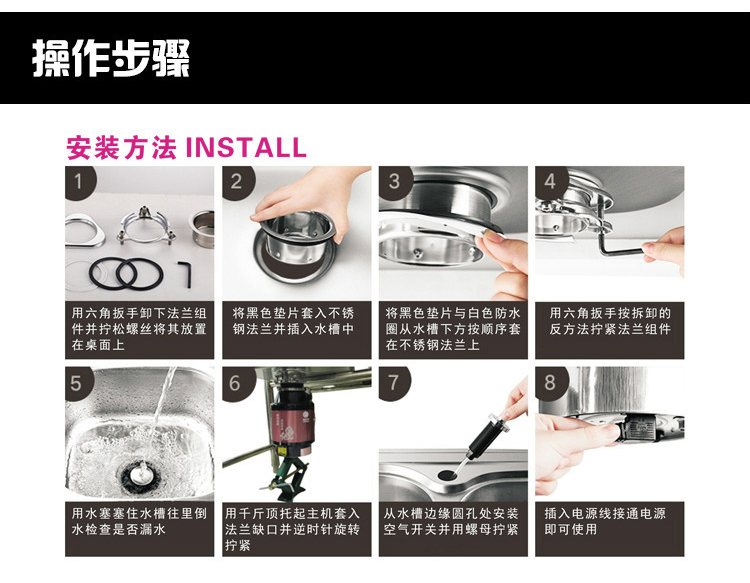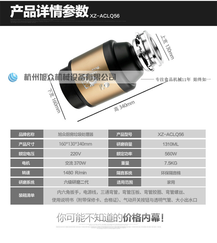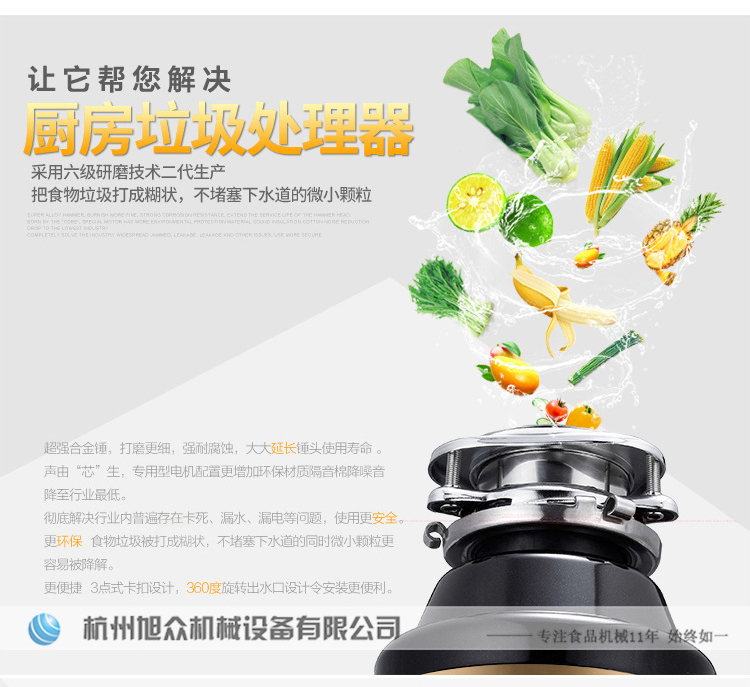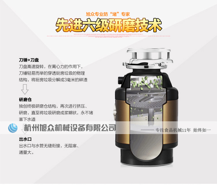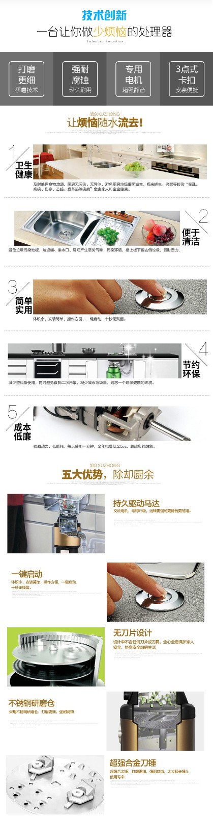 ACLQ56-廚房垃圾處理器,該機器是靠內部結構、零件組合達到處理垃圾的效果,通過碾、壓、擠、磨等系統的處理,在十幾秒內安全將食物垃圾處理成小于3毫米的顆粒,隨著水流排入下水道,使用十分安全。