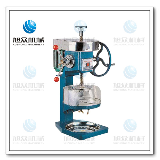 轉動搖把,將主軸升到最高點,放冰塊于刀盤上;轉反向動搖搖把,放下主軸,使壓針插入冰塊;啟動開頭進行工作,工作一個程序后,按以上步驟重新操作后進行第二次工作。