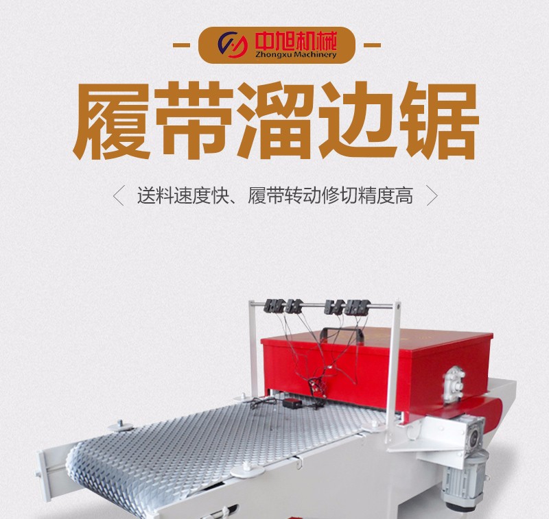 1、此溜邊鋸用于對自然寬木板進行修邊、規格分片。規格多、送料速度快、履帶轉動修切精度高。