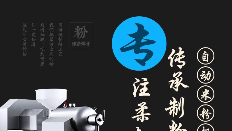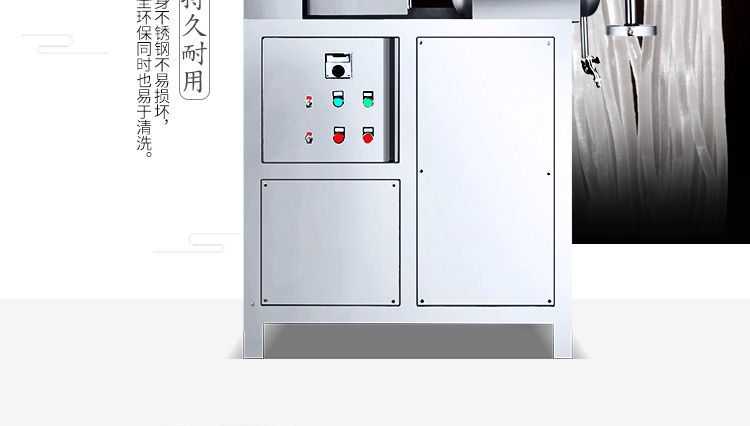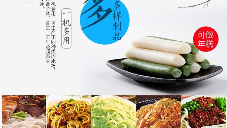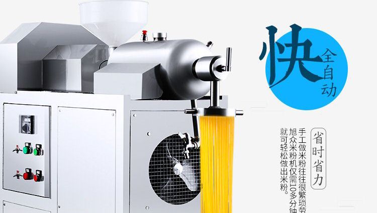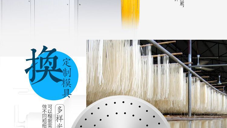 改進型米粉、米線專用機,裝有自動溫空裝置,整個生產過程設備均在恒溫狀態下運行,自動化程度高,操作簡單,l人即可生產。可生產米粉、米線、桂林米粉、過橋米線、年糕等產品。各種形狀都可生產(圓、扁),加工食品外表光滑,厚薄、寬窄、粗細均勻可調,筋軟適度,有彈性,口感柔軟、味道純正。