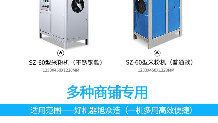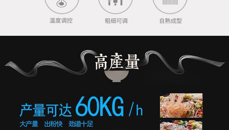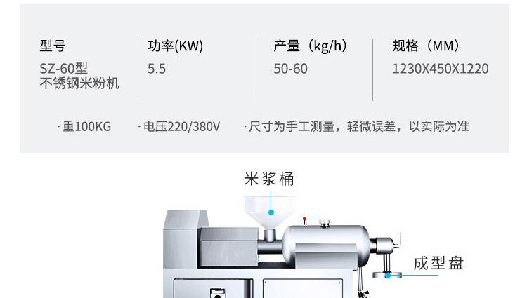 SZ-60不銹鋼米粉機,可生產米粉、米線、桂林米粉、過橋米線、年糕、糍粑等產品。各種形狀都可生產(圓、扁),加工食品外表光滑,厚薄、寬窄、粗細均勻可調,筋軟適度,有彈性,口感柔軟、味道純正。