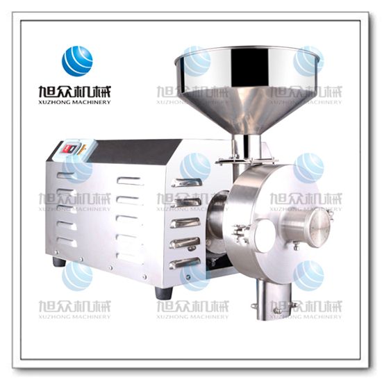 連接軸和電機軸直接相連,電機啟動運轉時,帶動連接軸以及套在連接軸上的磨盤一起運轉。待磨物料從料斗進入磨粉套,磨盤的心軸和磨粉套之間的相對運轉,破碎力使物料絞碎成小塊顆粒;絞碎后的小顆粒在磨盤的螺旋運動下被帶進兩塊磨片中間,磨片齒紋的相對運轉,使物料在短時間內被粉碎成細小顆粒(粉劑);粉從磨片的齒溝流出,甩向四周,同時被裝在磨盤上的刮粉板帶下,從出粉口出來。