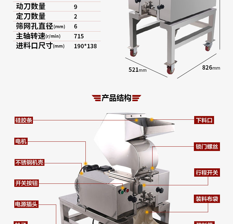 在食品、醫(yī)藥、化工、飼料、科研等行業(yè)的粉碎加工中,受原始物料形狀各異,體積的大小不同及物質(zhì)性態(tài)的影響,出現(xiàn)難進(jìn)料,難加工的情況。根據(jù)這些特性,我們專門針對性的研發(fā)出全不銹鋼破碎機(jī)。本機(jī)不受物料的粘度,硬度,軟度等限制,對任何物料都能起到很好的破碎。