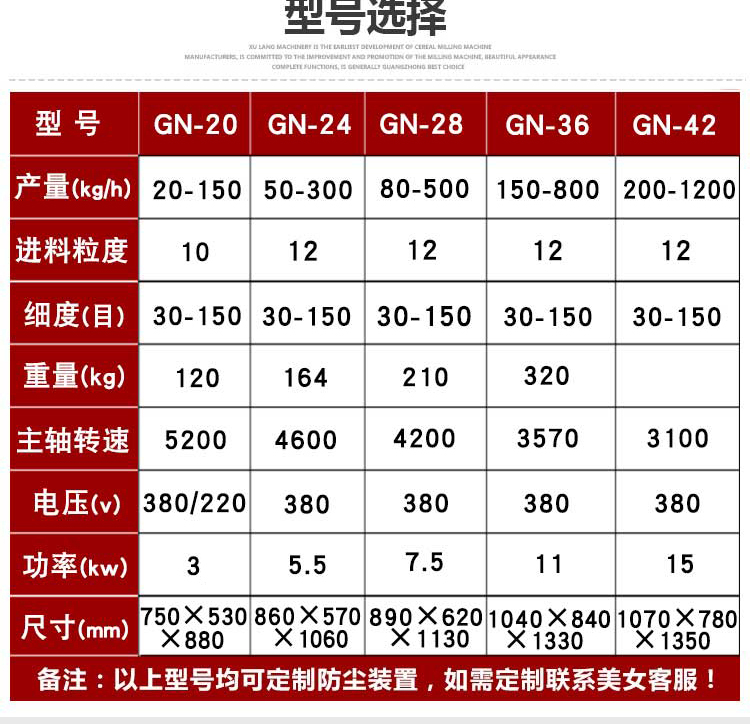 型號(hào) | GN-20 | GN-24 | GN-28 | GN-36 | GN-42 |