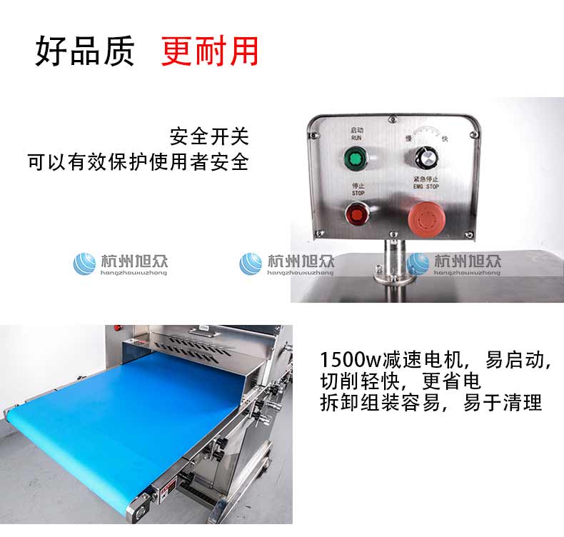 采用優質不銹鋼整體機身設計,強度高,無污染,符合食品安全生產規范 表面經過深度拋光和噴砂處理,外表光滑,易于清理 上刀下輥交叉配合,鋸齒刀刃切削,對肉類進行精密切割, 保證食材切面平整,品質如一。 安全開關,可有效地保護使用者的安全。 懸臂式刀組,可輕易拆卸、清洗,不同規格的刀組更換便捷。 工作效率高,產量大。 速度快,效率高。 1500W 減速電機電機,易啟動,扭矩大,切削輕快,更省電。 拆卸組裝容易,易于清理。 適用于各種禽肉類切條切塊。