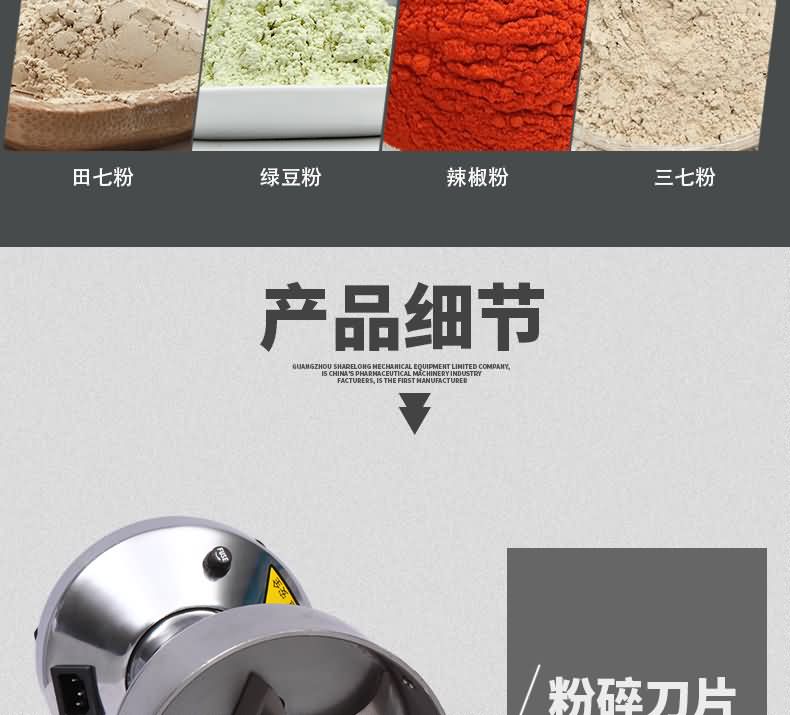 1、功能:可粉碎各種藥物物品等,成品為粉末。