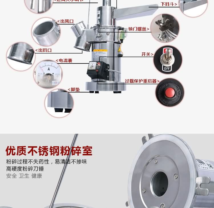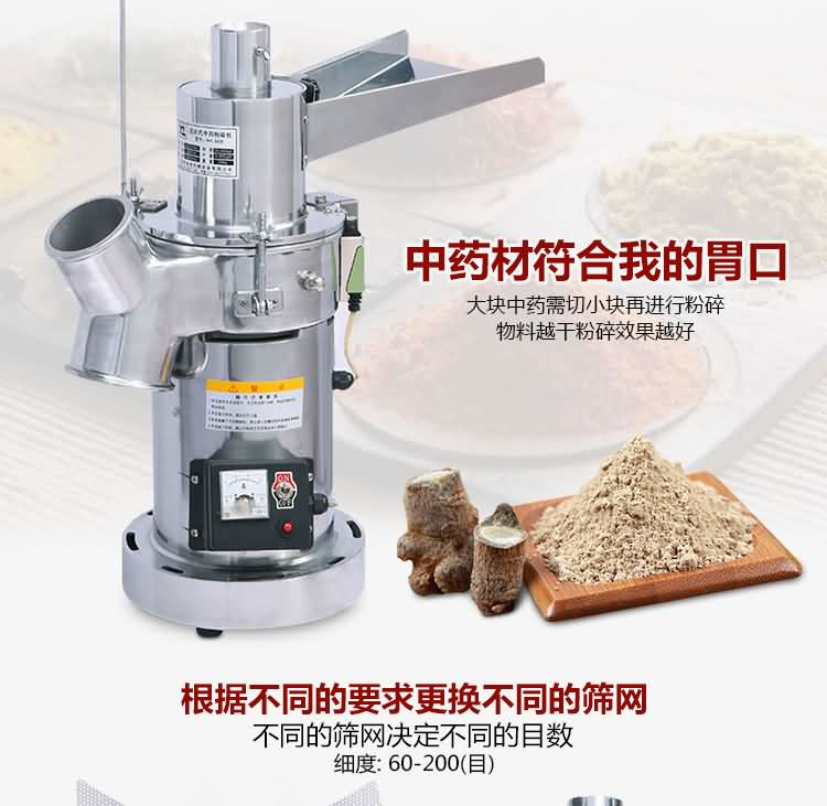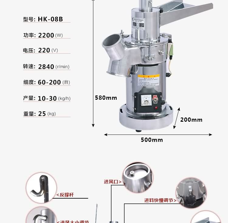 HK-08B落地流水式粉碎機(jī)又名高性能粉碎機(jī)、體積小、造型美觀、移動方便、操作簡單,特殊構(gòu)架運(yùn)轉(zhuǎn)絕無振動、噪音最低、安全性高、性能穩(wěn)定、衛(wèi)生潔凈、損耗極低、效率高、細(xì)度準(zhǔn)確可調(diào);與藥物接觸部分用不銹鋼制作,符合衛(wèi)生標(biāo)準(zhǔn),除制細(xì)粉外,還可制煎湯劑用的粗顆粒飲片(用粗顆粒飲片煎煮湯藥,可提高飲片有效成分的溶出率,節(jié)省大量藥材),對中西藥物、化工原料、食品原料、礦物、土壤、糧食、煤炭、實(shí)驗(yàn)原料有極理想的粉碎效果,是粉碎脆性物料的首先機(jī)型。是目前診所、藥店、醫(yī)院藥房、研究所、實(shí)驗(yàn)室、試制室、大中專院校、科研單位、商場、家庭粉碎的理想設(shè)備。