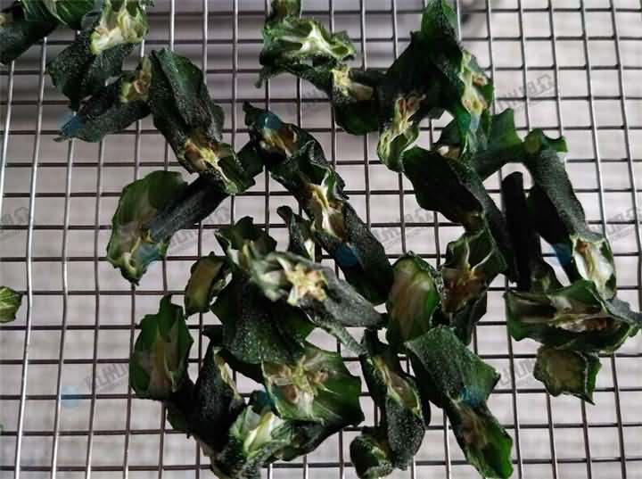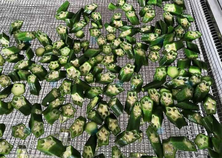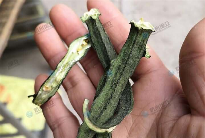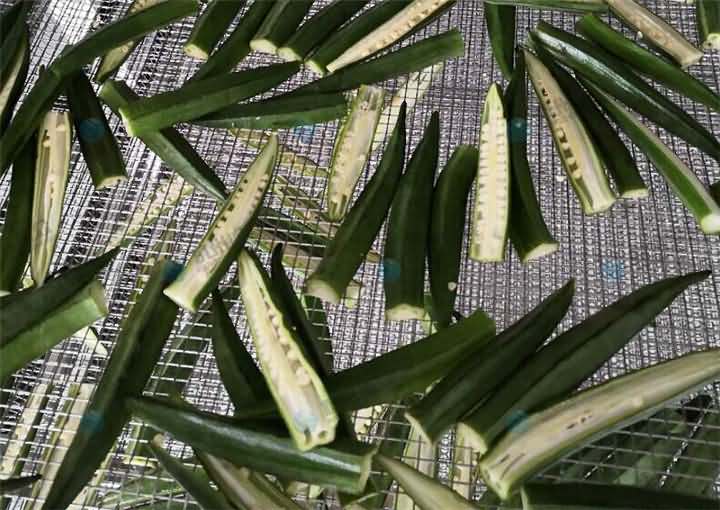 專業烘干機 師傅說如果將秋葵切斷,對切的沒撈過水的5~6個小時,撈過水的4小時左右,物料較少,具體的還得看物料的厚薄度和數量。