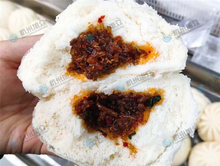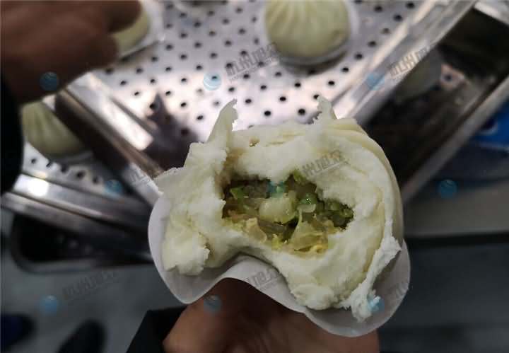你能相信兩種口味相反的餡料都是通過一臺(tái)包子機(jī)制作出來的嗎?現(xiàn)場考察包子機(jī)客戶們相信,因?yàn)樗麄冎庇^了包子機(jī)做香辣粉絲包和包菜粉絲包的過程,并醒發(fā)和蒸煮后品嘗了包子機(jī)做出來的包子口感,不僅外觀上俘獲了客戶的視覺,也俘獲了他們的味覺,因?yàn)轲W料是客戶自己帶過來的,就是面粉的話用的是廠家的,整體上來說不管是效率還是制作成品的外觀上,客戶已經(jīng)為包子機(jī)打上了滿滿的分,在經(jīng)過品嘗口感后發(fā)現(xiàn)比員工手動(dòng)包的包子口感無差別,有可能還要更甚(當(dāng)然也有配方問題)。包子機(jī)的優(yōu)勢暴露在客戶的面前,想不買都不行。