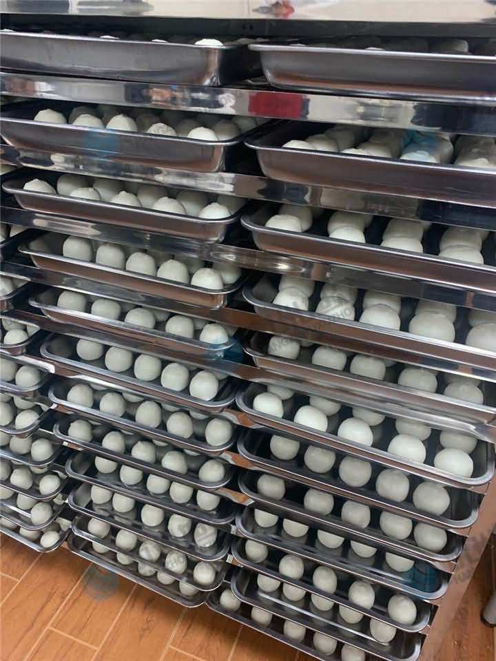 來自富陽的許老板帶著員工一起跟著師傅學習操作多功能包餡機,歷經幾個小時的培訓,終于步入員工和老板都能操作包餡機生產熟米粿正軌上,看著一排排的熟米粿,許老板不經感嘆到,以往得安排四五個員工花至少也得半小時時間才能做出這么多量,如今只要安排一兩人和面拌餡,一人撿盤擺盤放盤便可,效率也是蹭蹭蹭的往上漲,早知如此就該早點買包餡機!