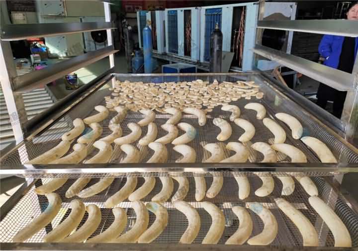 空氣能烘干機(jī)烘干香蕉片前后對(duì)比效果: