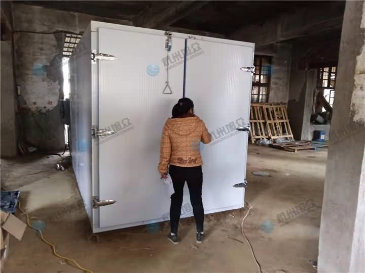 湖南李老板購買空氣能烘干房一體機后,在家坐等咱們師傅上門安裝,客戶聲稱在整個安裝過程中全是由師傅一人完成,有時想搭把手感覺自己都是多余的,烘房搭建好后開始烘黃桃了,客戶主要是烘干黃桃,烘完后老板突發奇想可以幫別人代加工烘干藥材什么的,等自己會了以后自己也入這個行業,這樣就多出一條致富道路。是的,烘干機給你了,至于你要用它烘干什么這都由你做主,當然如果不清楚其它物料烘干需要多少時間,可以電話4008852117咨詢客服了解空氣能烘干機。
