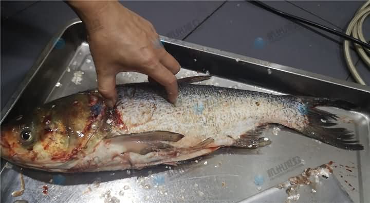 旭眾XZ-018全自動殺魚機開肚去鱗殺白鰱的效果: