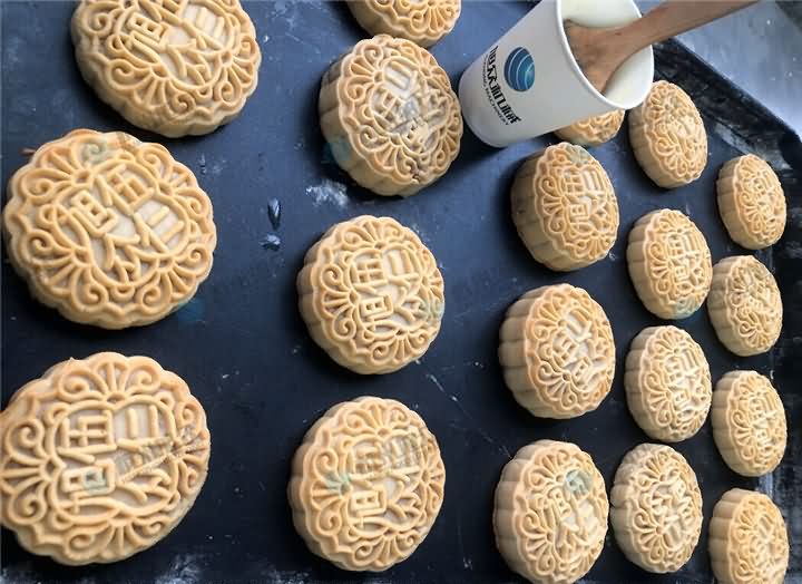 旭眾如若不是食品加工設備機械廠,感覺都能改行做月餅加工食品廠了,平均每月都會有不同的客戶拿著自己的工藝,通過旭眾月餅機做著各種不同特色的月餅,花樣多種多樣差點以為自己來的不是機械廠而是食品廠了。