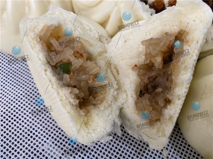 包子機現場演示做粉絲包和梅干菜包子效果: