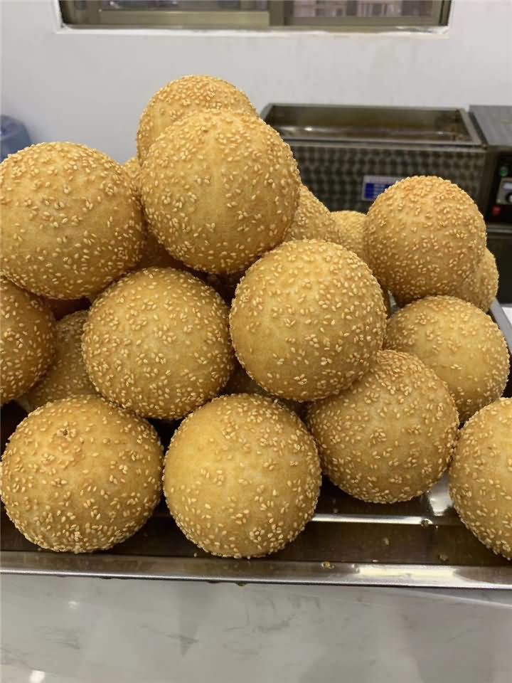 剛剛炸出來的麻圓成色非常好!麻圓沒炸之前都是用全自動湯圓機自動包餡成型,至于后期炸出來的麻圓效果,那就是屬于個人技術問題,如果沒有技術的話可以考慮購買湯圓機,我們將面粉提供做麻圓的工藝配方教學哦!