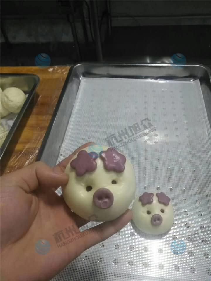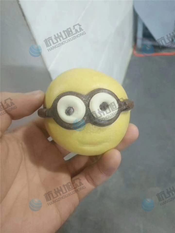 看這么可愛的包子,客戶用我們的湯圓機做出來后加工上去的,簡單一步就能完成一個完美的豬豬包,小黃人……