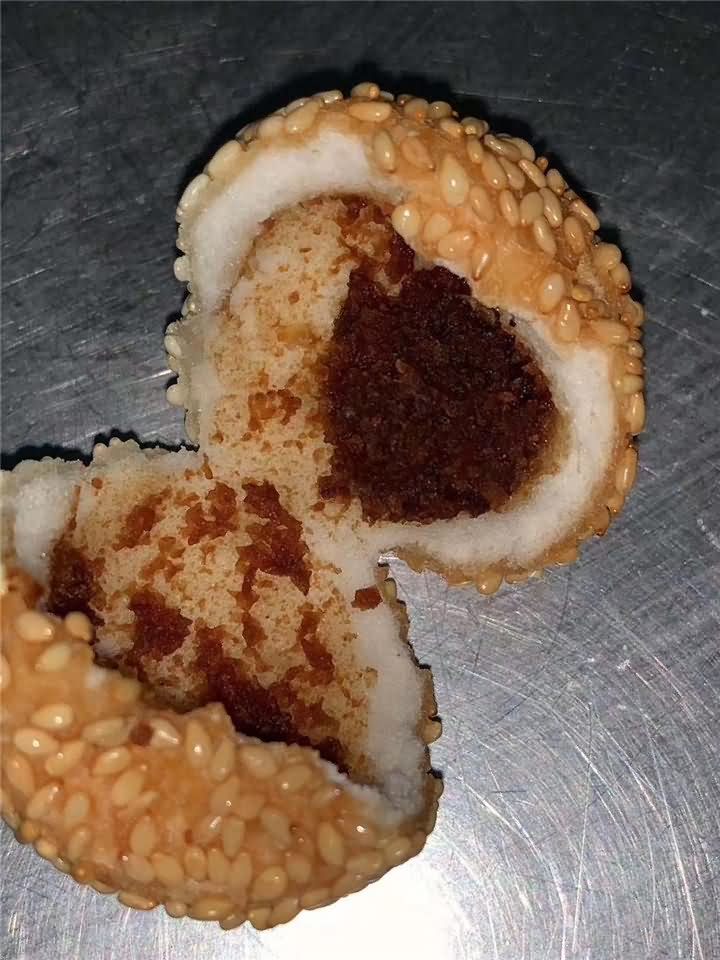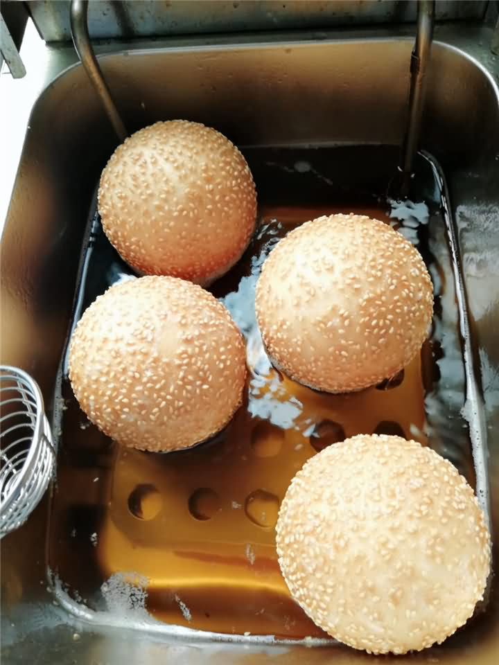 剛剛炸出來的麻圓,這成色不錯吧!