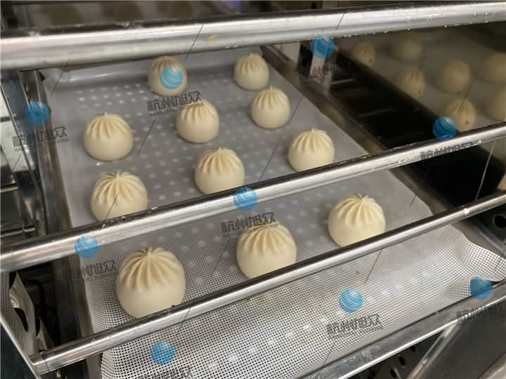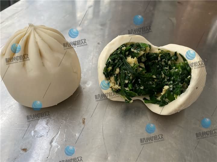 等客戶到公司的時候開始著手做餡料,和面,壓面,再用包子機自動卷面包餡成型包子后再放入醒發(fā)箱中加速醒發(fā)時間,醒發(fā)好后再放入蒸柜蒸15分鐘左右時間就好了。在這一整個操作過程下來,客戶眼中看到的就是僅需1-2名人員便可以生產(chǎn),做出來的包子效果還不遜于人工包的包子,再多方面的考察下,決定把考察出來的結(jié)果做個報告交予負(fù)責(zé)人商討再定購包子機。
