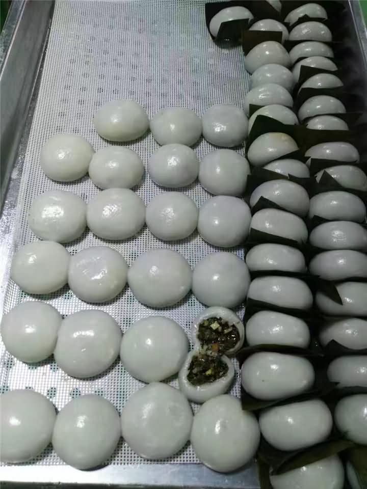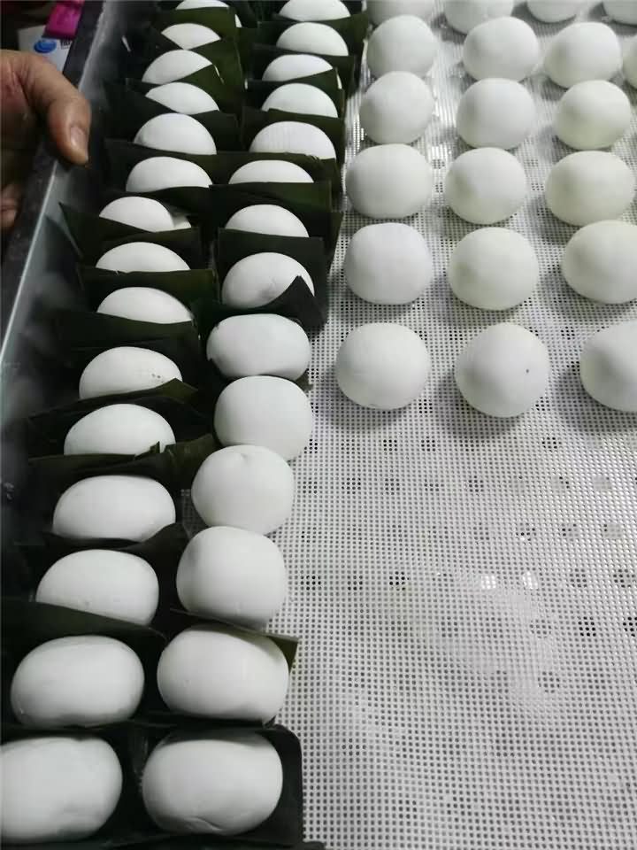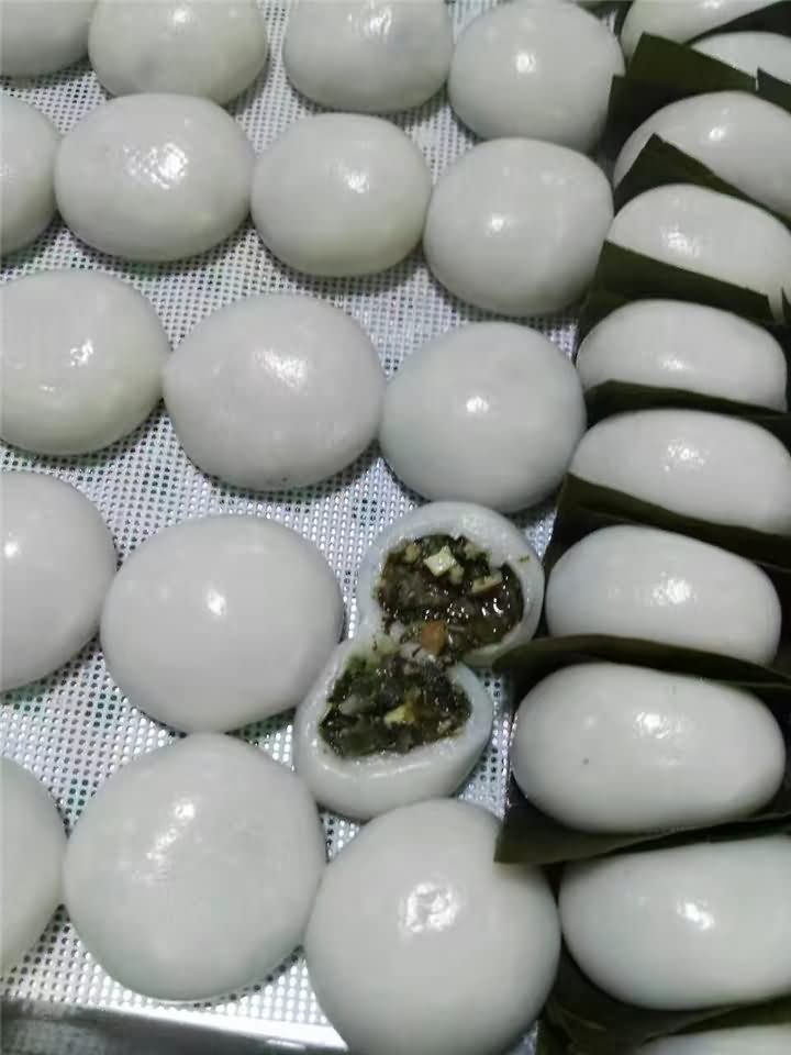 旭眾VFD-4000A湯圓機做葉兒粑啦,也可以成為豬兒粑,效果是杠杠的,我們來看下未蒸前與蒸好后的葉兒粑效果: