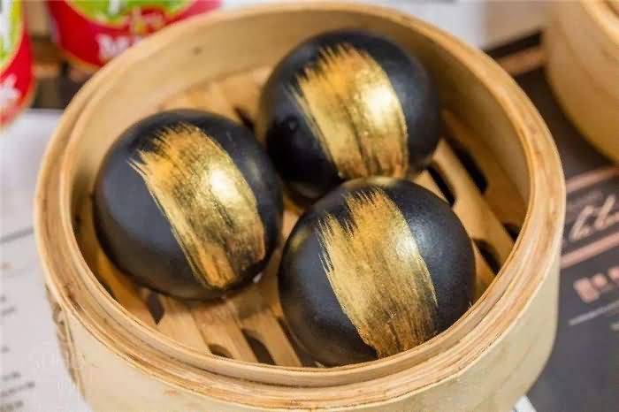 網紅“黑金流沙包”有見過嗎?購買包子機的客戶讓我見識到了,烏黑的包子表面刷了一層黃燦燦的金子,所以才叫做黑金流沙包,當然那并不是真的金子哦,這個屬于客戶的工藝問題也不好細究,反正就是吃了也不會有毛病的食品,那么我們來看看用包子機做出來的黑金流沙包效果: