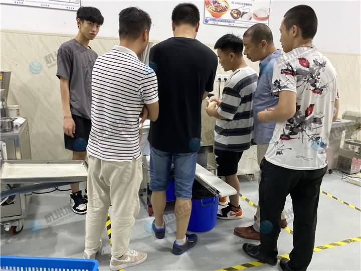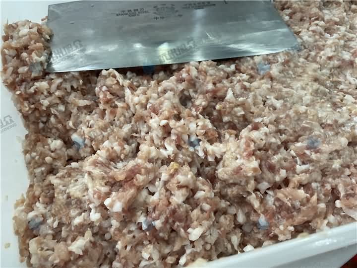 朱老板帶著五斤左右的肉餡來廠考察包子機(jī),想要看死皮包效果,于是便安排了XZ-87包子機(jī)現(xiàn)場演示做死皮肉包: