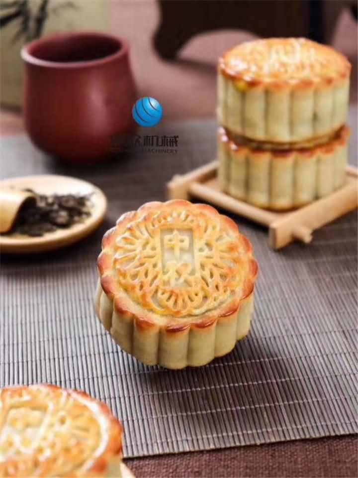 月餅機做的月餅就是精致又小巧,皮餡比例均勻,看看這包裹的餡料多么的飽滿,再搭配上客戶定制的花紋模具印成型后的月餅,簡直就是色香味俱全!