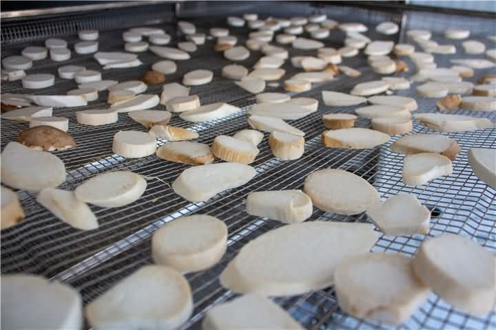 蘑菇類的一般含水量比較大,烘干過(guò)程過(guò)中要注意排濕,前期溫度不能過(guò)高,否則容易烘熟,使烘出來(lái)的成品顏色變黑。但也排濕過(guò)量不然色澤偏白,失去香味,一般排濕時(shí)間不超過(guò)6小時(shí)為宜。