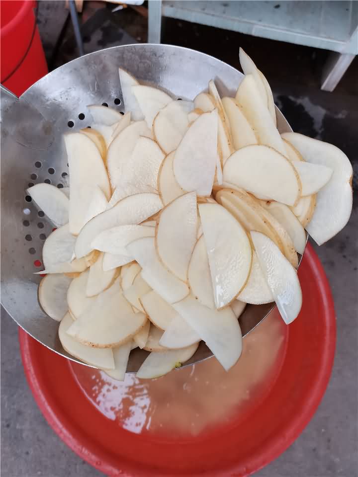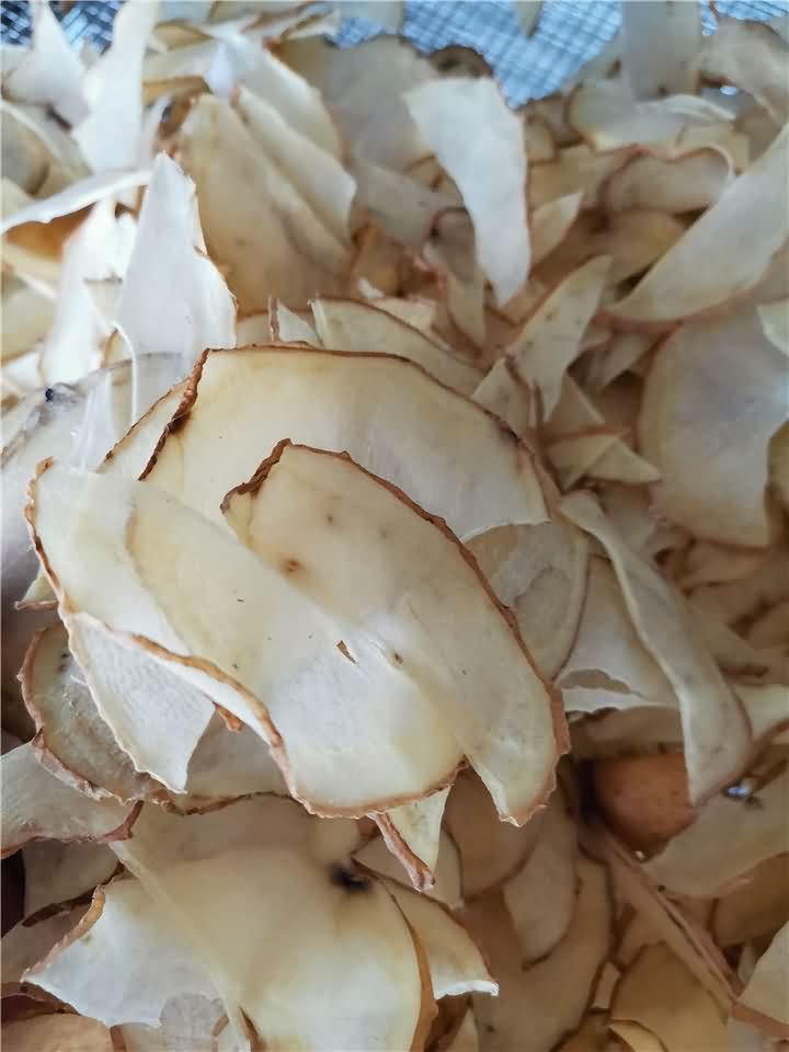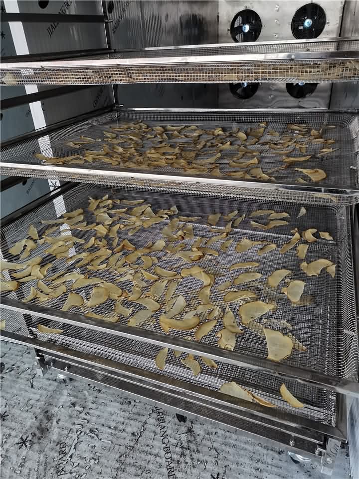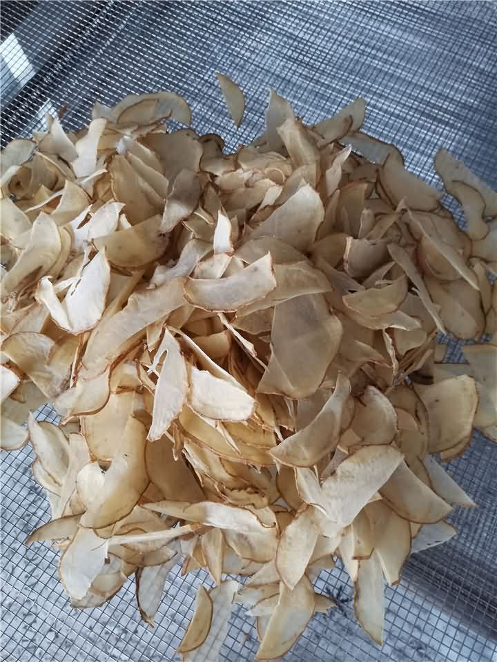 土豆烘干步驟:為了能加速烘干時間,可將土豆切成片狀,水煮后撈出平鋪放在架子上,不要各種重疊擺放,這樣放入烘干房內可烘干均勻。那么我們來看看土豆片烘干前后的對比: