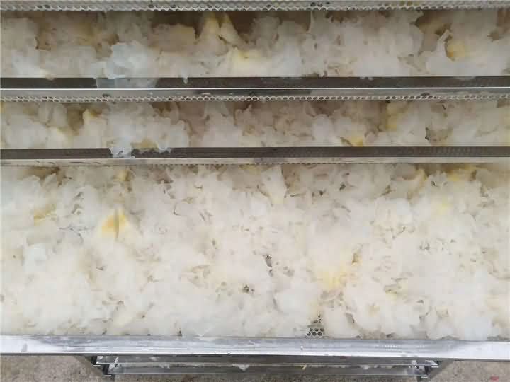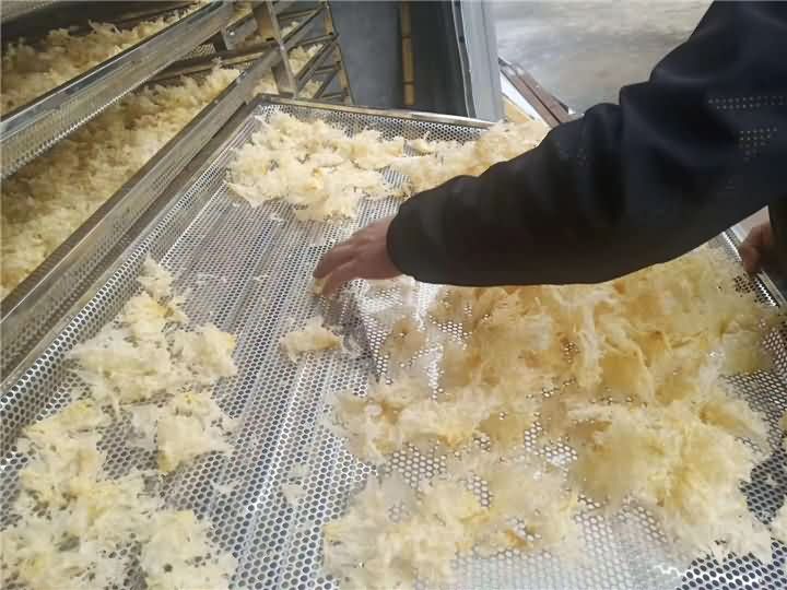 為什么要買烘干房?銀耳加工食品廠負責人說道,以前都是看著天氣來自然烘干的,隨著天氣的變化而變化,有時候連續半個多月都沒有加工銀耳,員工無事做還得照常付工資,對食品廠造成很大的損失,于是便想用烘干房一體機,這樣就不用再被天氣而束縛著。不曾想到,烘干房烘干的銀耳效果遠遠超于自然烘干,真是慶幸找到了好的設備,也很后悔沒有早一點接觸!再此也祝客戶銀耳食品廠越來越火旺!!!