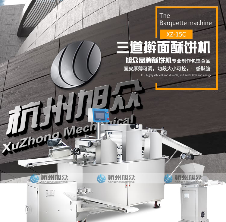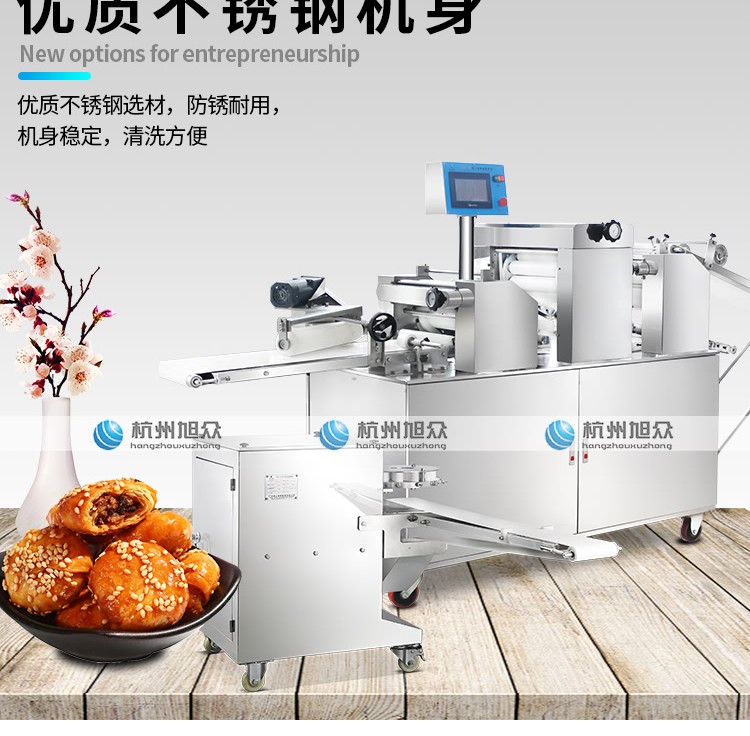杭州旭眾全自動酥餅機,又稱多功能酥餅機,專業生產,黃山燒餅、金華酥餅,云南鮮花餅,老婆餅,綠豆餅,糖酥餅,肉松餅,等。