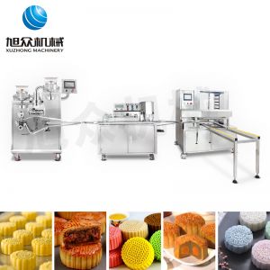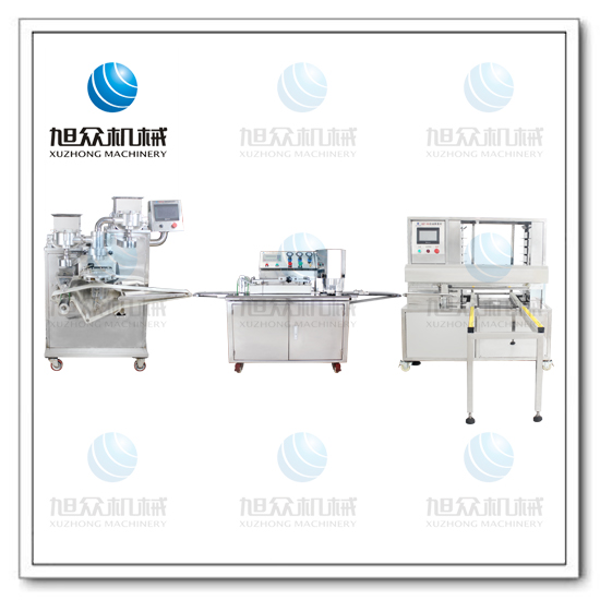 五. 月餅自動包餡機與月餅自動成型機、月餅自動排盤機組合成一條月餅自動生產線,自動化程度高.提高生產效率。