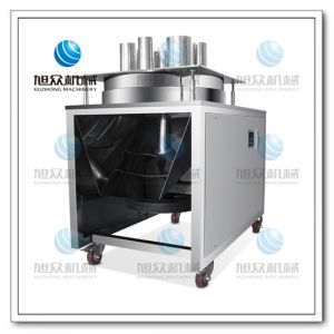 使用前將機(jī)器放置在干燥、通風(fēng)的水平地面上,確保機(jī)器工作平穩(wěn)、可靠。使用前對各部位進(jìn)行檢查,緊固件是否在運(yùn)輸途中松動,開關(guān)及電源線是否因運(yùn)輸而破損,料斗或料盒內(nèi)是否有異物。檢查電源電壓是否與本機(jī)使用電壓相符合。將電源軟線伸長,把帶有接地符號的黃綠線芯可靠接地,把其余三條線芯(配置單相電動機(jī)時為兩條)分別接到開啟式負(fù)荷開關(guān)(閘刀開關(guān))斷開時的引出端子上。工作前打開前門,用手撥動轉(zhuǎn)盤觀察是否有磕碰刀具的現(xiàn)象,如果有則將轉(zhuǎn)盤上的緊定螺栓松開,稍微向外移動轉(zhuǎn)盤,然后緊固緊定螺栓。閉合開啟式負(fù)荷開關(guān),啟動開啟按鈕,視切刀運(yùn)轉(zhuǎn)方向是否正確,從入料口觀察逆時針轉(zhuǎn)動為正確,否則調(diào)整電源線,待切刀運(yùn)轉(zhuǎn)方向正確后空載試運(yùn)轉(zhuǎn),各部位無異常方可試機(jī)。